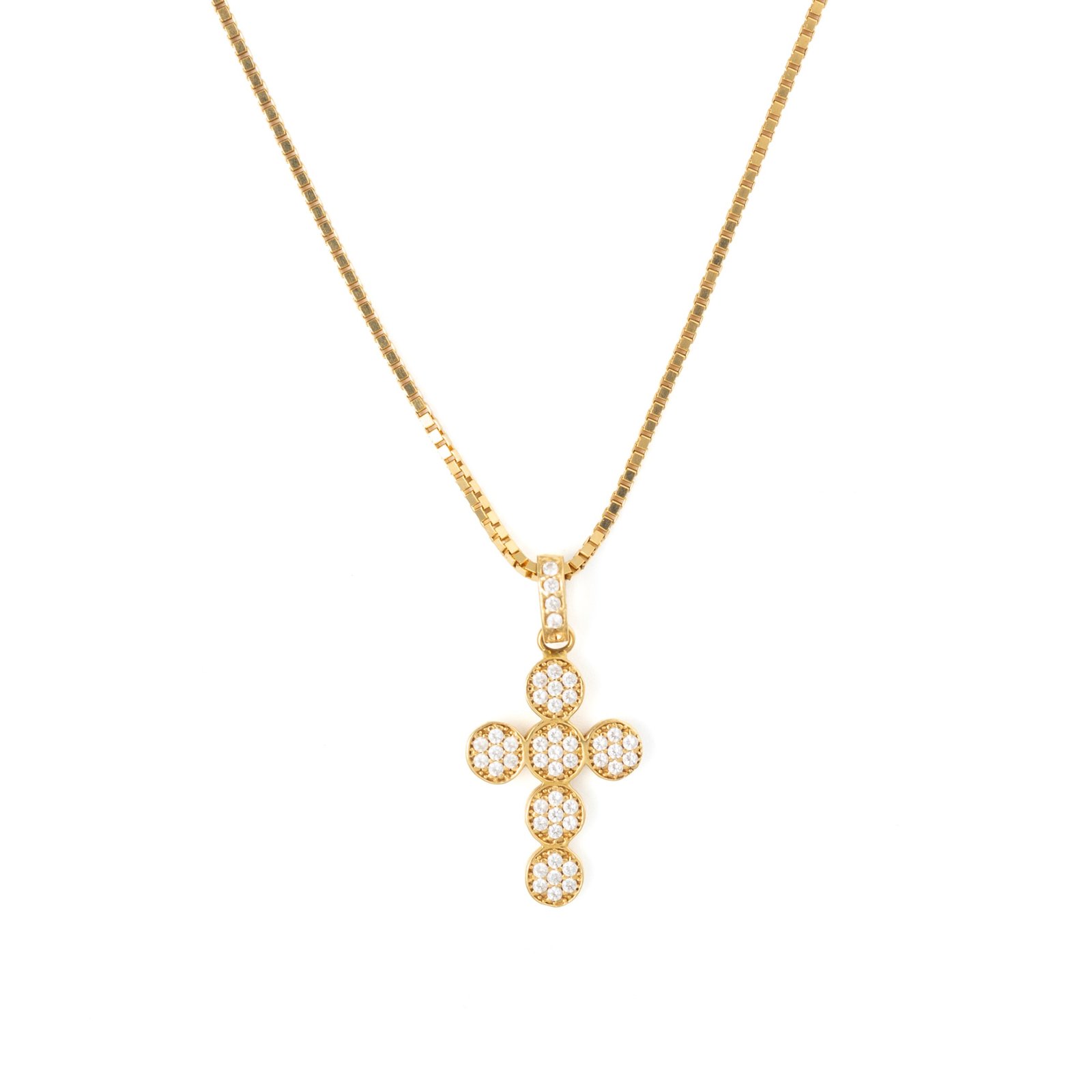 O pingente Cruz Cravejado é uma joia repleta de significado, sendo um símbolo de fé e esperança. Em ouro amarelo 18k e pedras zircônias cravejadas